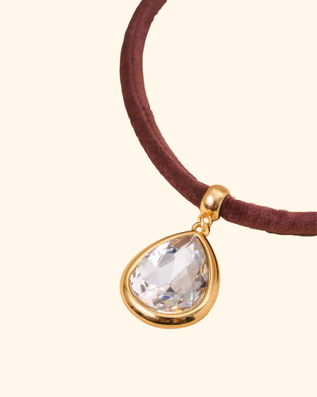 Colar de veludo vinho com pingente em formato de gota banhado a ouro. Peça hipoalergencia, sem níquel na composição.